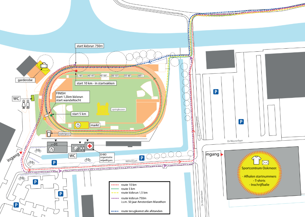 De start, finish en inschrijving van de Sloterplasloop vinden plaats op de atletiekbaan van AAC.